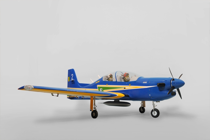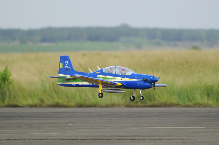 ARF stavebnicebrazilského vojenského cvičného letounu klasické celobalsové konstrukce pro pohon benzínovým motorem 40-60 ccm pro zkušené piloty obřích modelů.