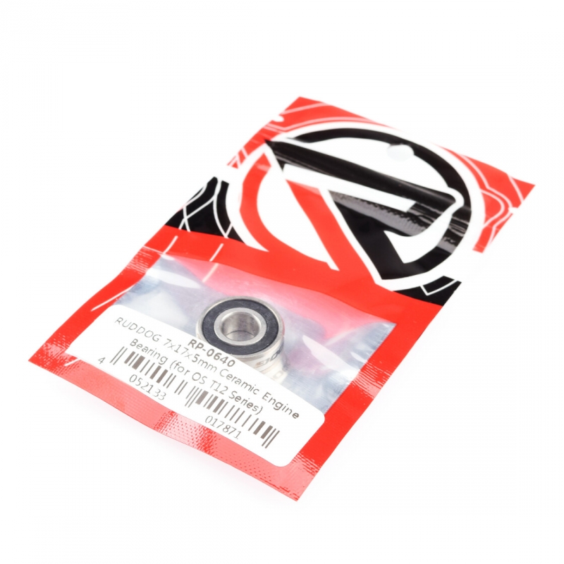 The RUDDOG 7x17x5mm Ceramic Engine Bearing is a specific front engine bearing. It features a durable PA66 fiber glass reinforced nylon cage aswell as rubber seals on both sides of the bearing for best sealant of your engine. The 7x17x5mm bearing fits the OS Engines T12 engines among many others.