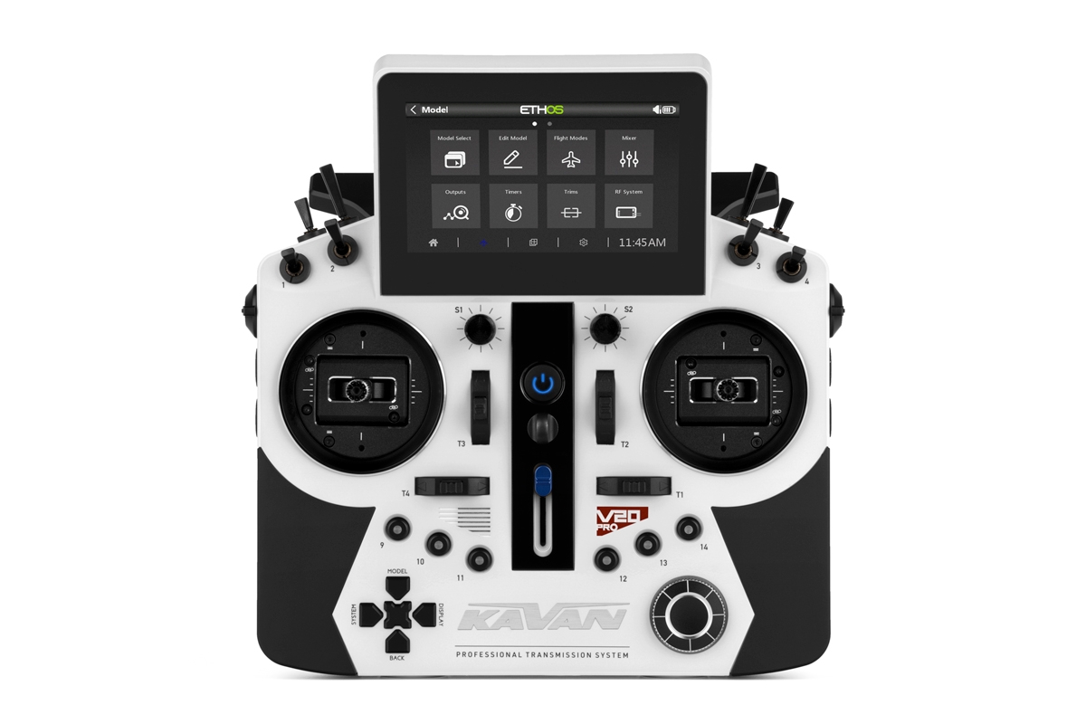 KAVAN V20 Pro je špičková 24kanálová RC souprava pro nejnáročnější modeláře se zcela novým třípásmovým přenosovým systémem TD Pro s plnou podporou telemetrie. Pyšní se špičkovou odezvou do 4 ms, a to na vzdálenost až desítky kilometrů. Zvolit můžete i přenosové systémy TW/TD/ACCESS/ACCESS R9/ACCST D16, rovněž s telemetrií. Spárovat V20 Pro tedy lze s celou řadou přijímačů KAVAN nebo FrSky, ať už telemetrických či nikoliv, s klasickými PWM a S.BUS výstupy.