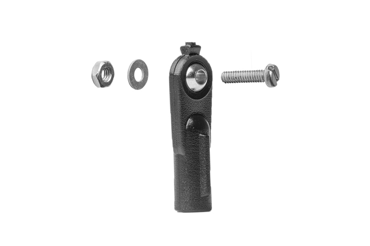 Nylon-Gehäuse einschließlich vernickelter Messingkugel (2mm Bohrung) für reibungsfreien Einsatz. Gewinde M2 im Nylon-Gehäuse. Inkl. Verbindungsmaterial. 10 Sets in der Packung