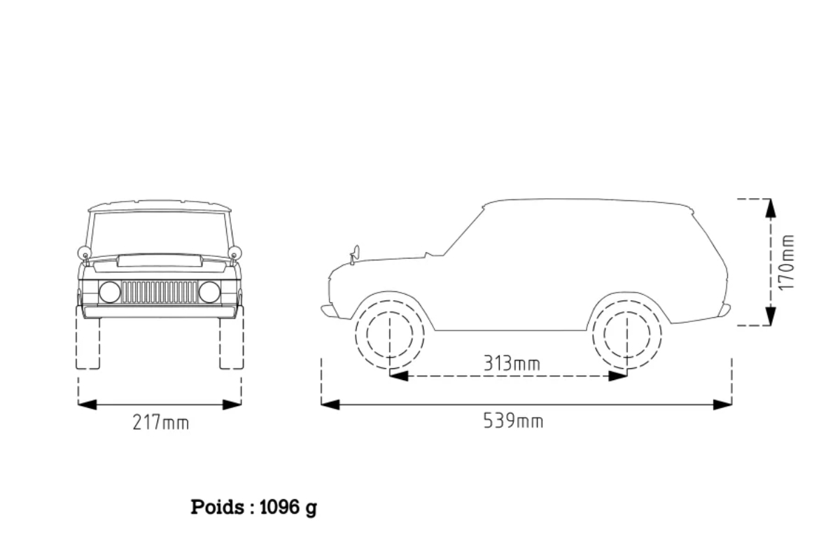 1/10th-scale ABS rigid body of the famous first-generation British 3-door 4x4 with a 313 mm wheelbase.