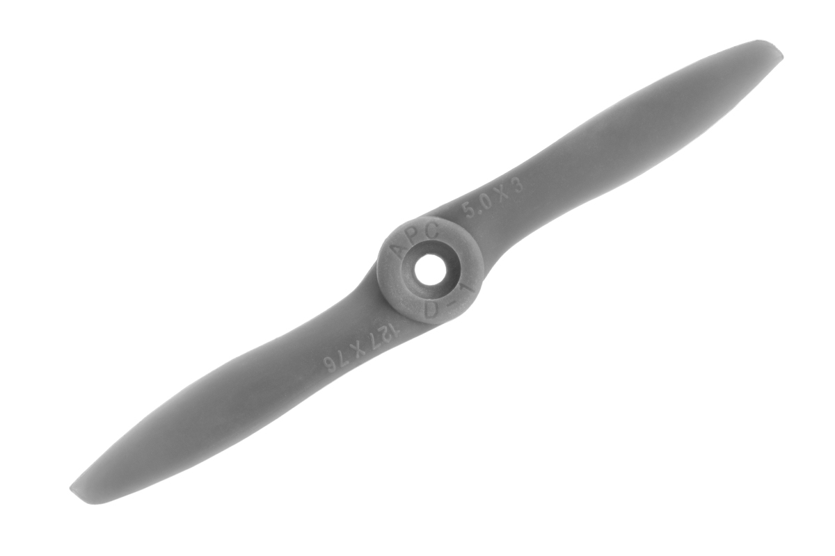 APC propellers are injection molded from composite materials using long glass fibers or long carbon fibers with a Nylon matrix.