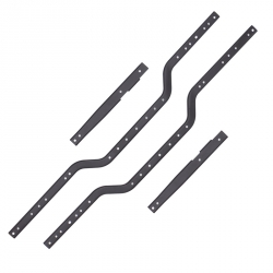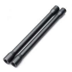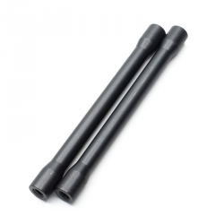 By modifying the lengths of the connecting rods (see options) and the mounting points on the chassis, you can change the wheelbase of the chassis.