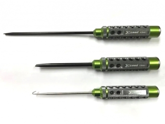 This is Xceed RC new series of high quality precision tools with new looking and new design. It is more lightweight than the old version because of holes are opened up in the handle. Featuring 2 colors tones (green color and gun metal) anodized hollow aluminum handle, the surface has been knurled for better grip in the hand while the top sports a rotating end cap for better comfort during use. Also, tips for new tools series are made of HSS (High Speed Steel) , which makes them more durable while continuing to ensure a good fit with the head of the fastener.