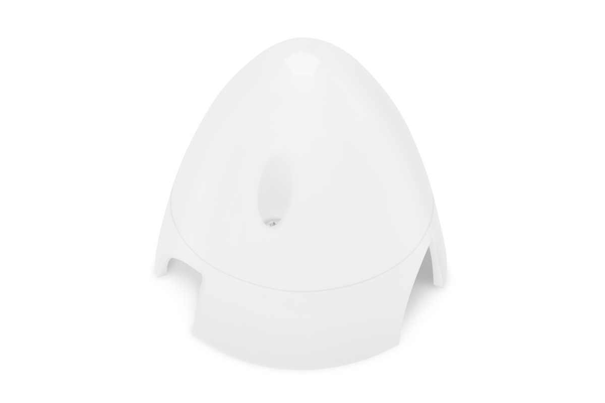 Plastic spinner for three-blade propeller front side assembly.
