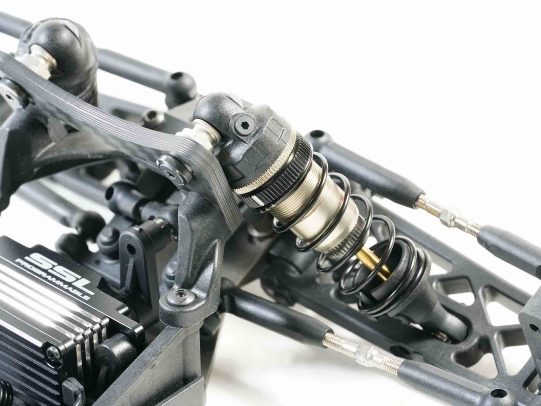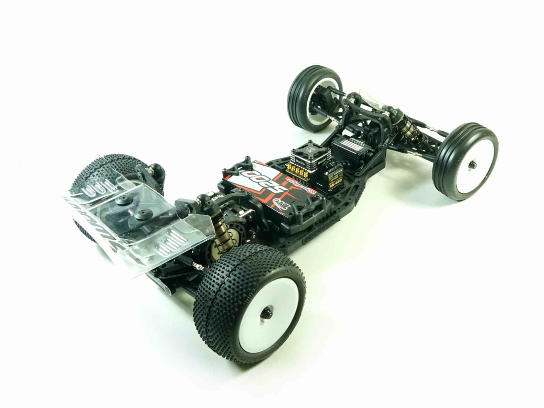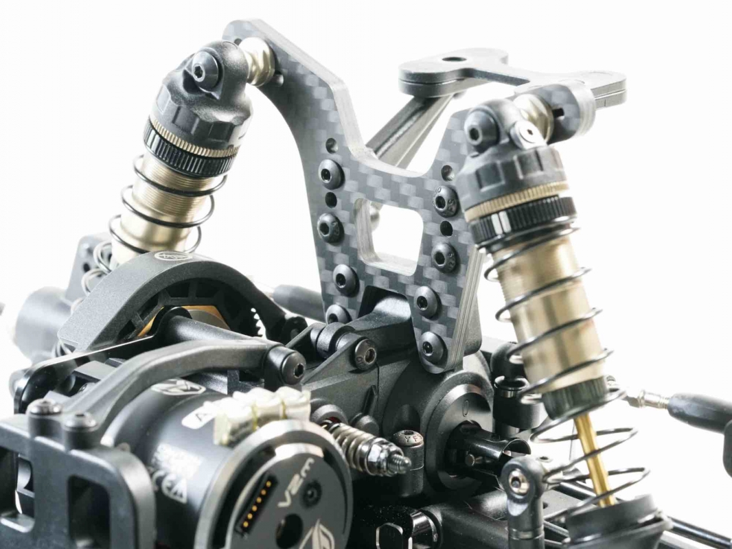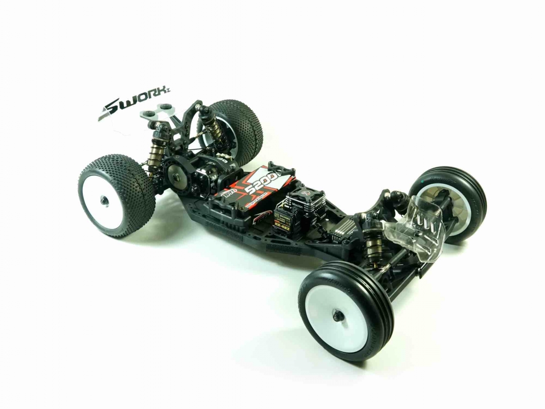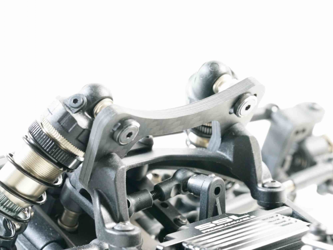 Adjustable Ackermann plate and Carbon steering plates are already in the kit. The S12-2D has got new angled lower arms (Gull Wings) that provide a lower Shock position which leads to a lower center of gravity.