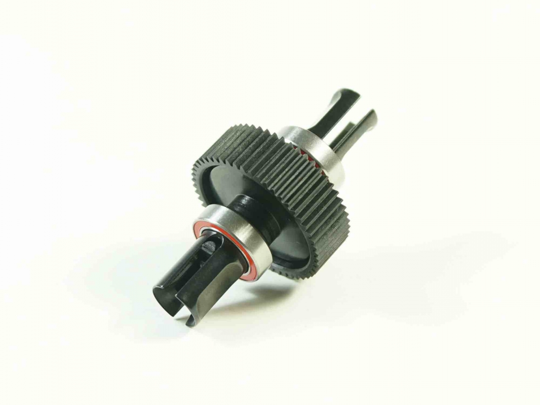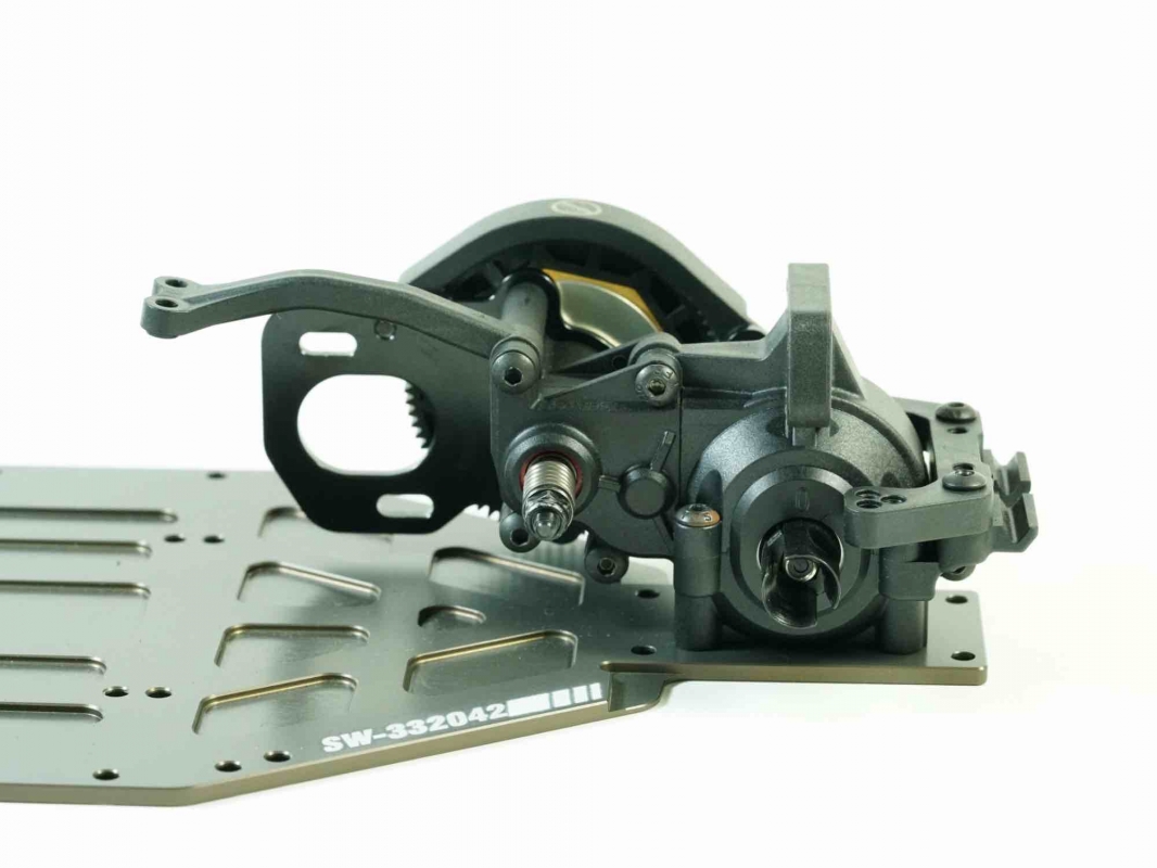 The kit is equipped with a quick release system for the ball differential, which can be mounted in 3 different positions. The rear lower arms are angled and the rear shock tower of the S12-2D has got different height positions. The weight of the gearbox is optimized with a perfect relation between size and strength.