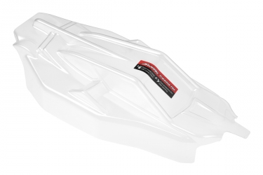 The adjustable wing mount allows for changes in height and angle while the pre-cut body shell is aerodynamically optimized for competitive racing.